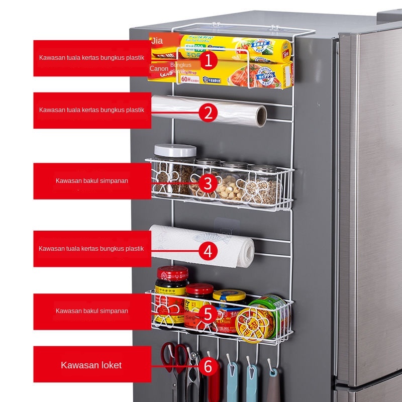 Rak Peti Sejuk Rak Peti Sejuk Rak Penyimpanan Peti Sejuk Pelbagai Fungsi Rak Bumbu Rak Peti Sejuk Yang Dipasang Di Sisi Rak Tuala Kertas Rak Penyimpanan